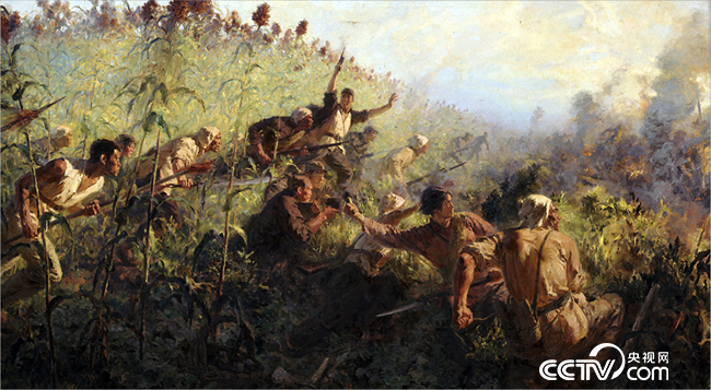 为庆祝中国共产党成立100周年,由中央广播电视总台、中国国家博物馆、中央美术学院等机构联合制作的百集特别节目《美术经典中的党史》在中央广播电视总台播出。节目以画为体,以史为魂,从中国共产党成立以来各个历史时期,特别是党的十八大以来的美术作品中,遴选出100件最具代表性的美术经典作品,生动再现中国共产党100年来波澜壮阔的光辉历程。本期为大家介绍的党史中的一幅画是中央美术学院教授、油画家韦启美先生创作的油画作品《青纱帐里游击队员逞英豪》。