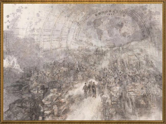 1957年举行的第一届中国出口商品交易会,简称“广交会”,是百废待兴的新中国为了冲破西方经济封锁与政治孤立,打开通向世界大门的重要窗口。2018年,画家方土、陈川根据第一届“广交会”成功举办的历史事件,创作了国画《广交会》。