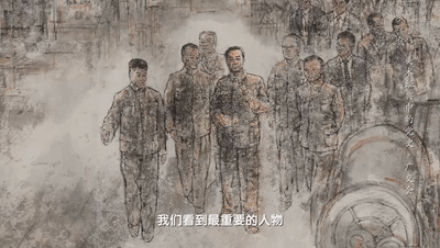 画面中心位置是最重要的人物——敬爱的周总理,他亲自主持确定了“广交会”这件大事。