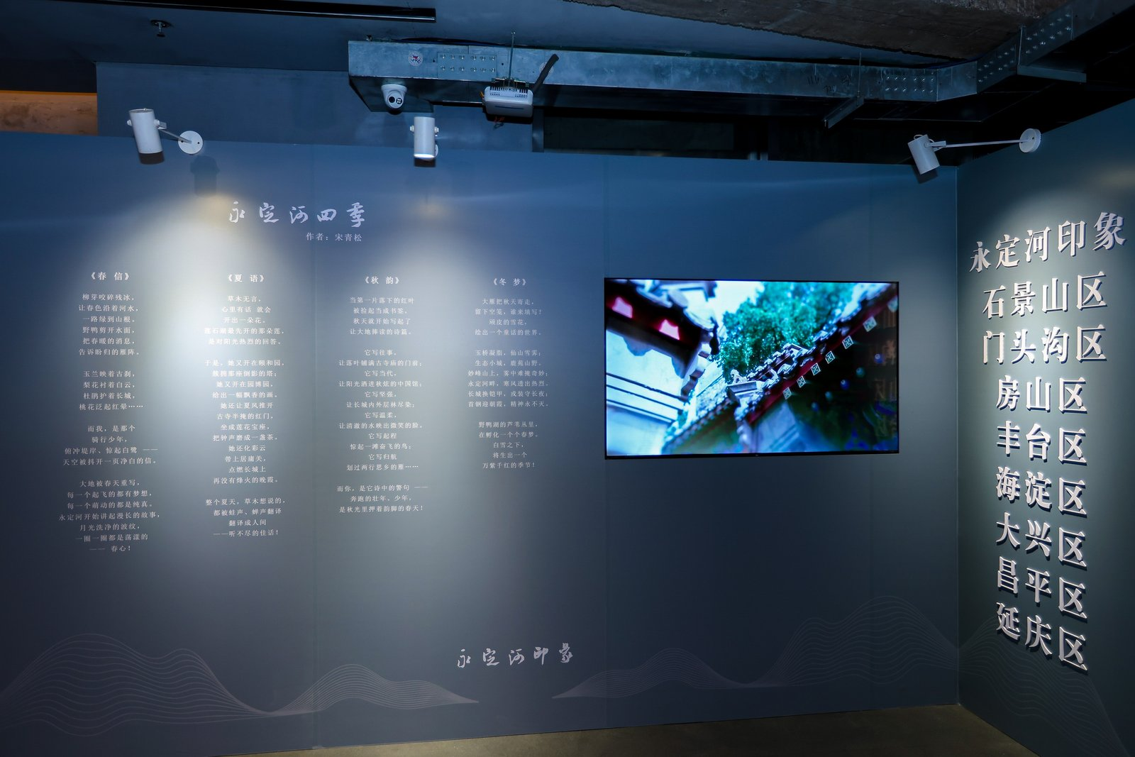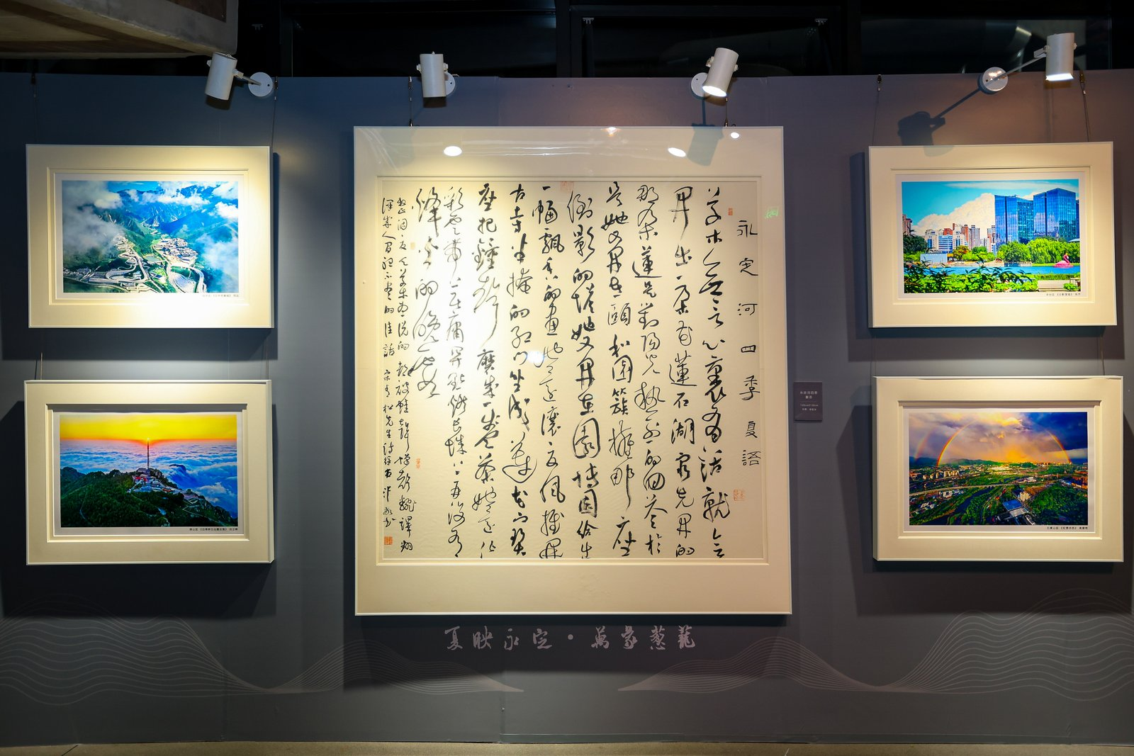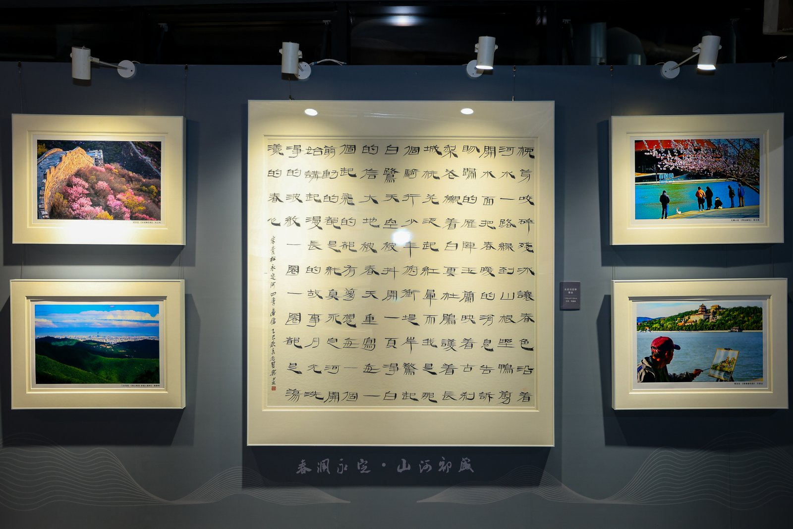 著名作词家宋青松为本次展览创作《永定河四季组诗》,描绘永定河四季之美,字里行间流淌着对母亲河的深厚情感。四首诗词分别由中国书法家协会副主席毛国典、中国书法家协会理事仇必鳌、王立志、徐右冰挥毫书写,“诗心”与“墨韵”完美融合,成为展厅中一道引人驻足的雅致风景。