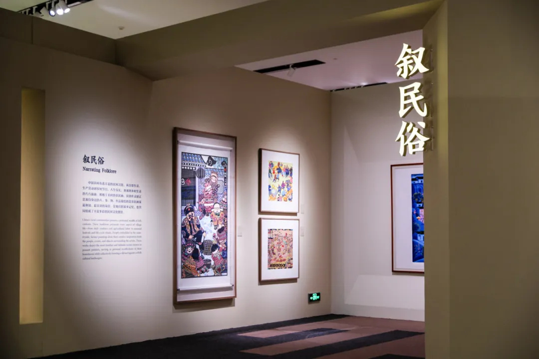 本次展览展出由各地选送、专家评审入选的作品278幅,以及经典作品、文献资料等70余件/套。展览以“乡村活力·时代精神”为主题,分为“叙民俗”“展农事”“焕新貌”三个部分,既有描绘舞龙舞狮迎新春的欢腾场面,也有表现了秋收冬捕的劳动场景,勾勒出乡村振兴的崭新画卷。从生活习俗、生产劳动和时代发展三个角度,呈现新时代农民画的创作现状,展现新时代中国乡村发展和民众生活。