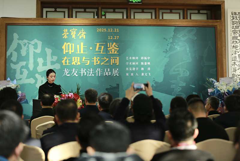 2025年12月21日,“龙友:仰止·互鉴——在思与书之间”书法展在北京荣宝斋开幕。展览聚焦文明对话,展出青年书法家龙友以142件中外思想家名言为内容的书法作品,以笔墨搭建思想交流的桥梁,吸引各界观众四百余人共聚一堂。
