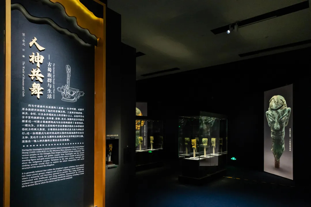 本次展览通过“惊世秘藏”“人神共舞”“崇祀天地”“互融共鉴”四个单元,生动呈现三星堆—金沙遗址的考古历程与丰富文化遗存,反映古蜀先民的生活与精神世界,揭示古蜀文明与中原地区及长江中下游地区的密切联系。