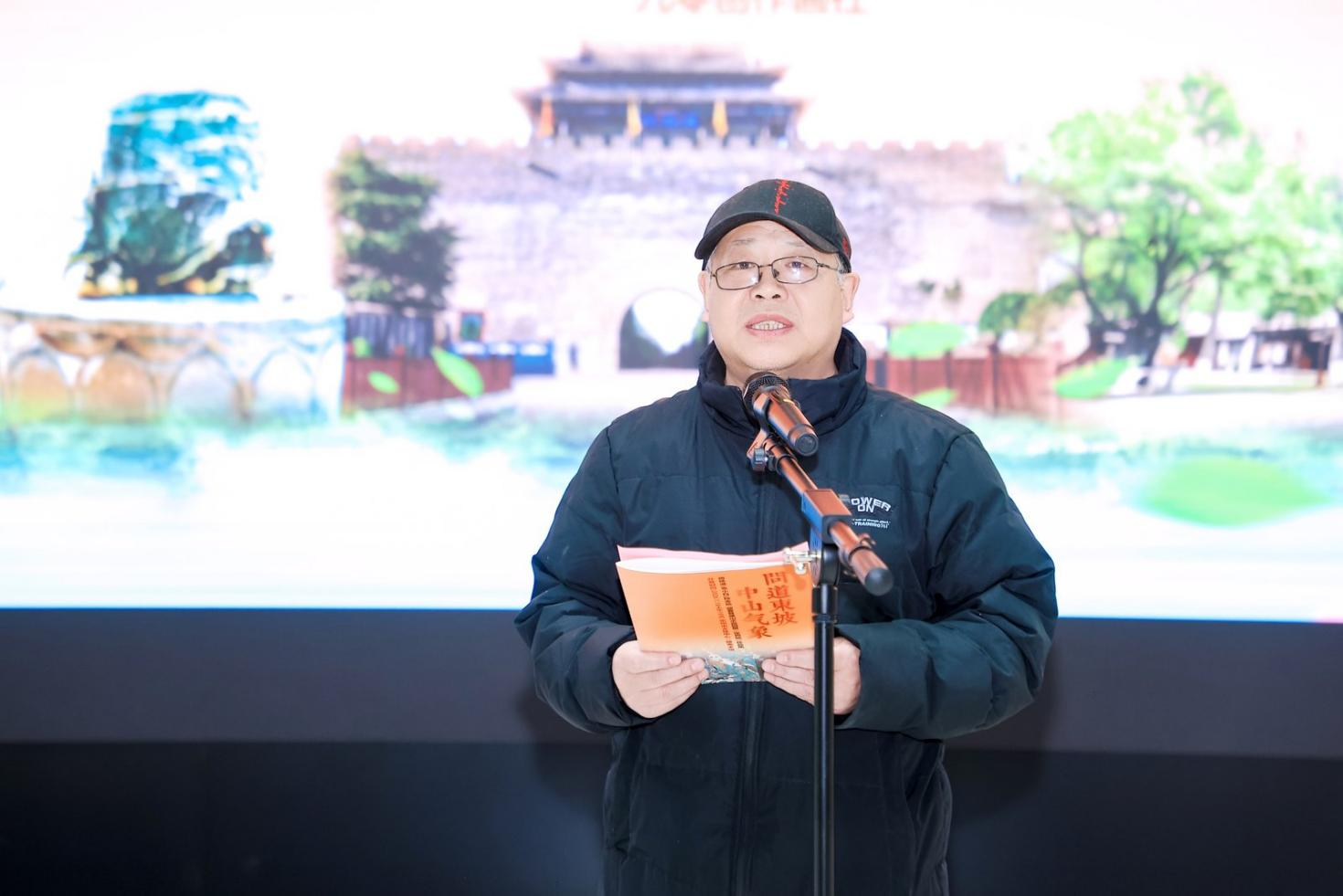 定州市文化广电和旅游局党委书记、局长秦鹏宣布“问道东坡 中山气象——周扬波、袁小白、段金拾迎春贺岁山水巡回展”开幕。