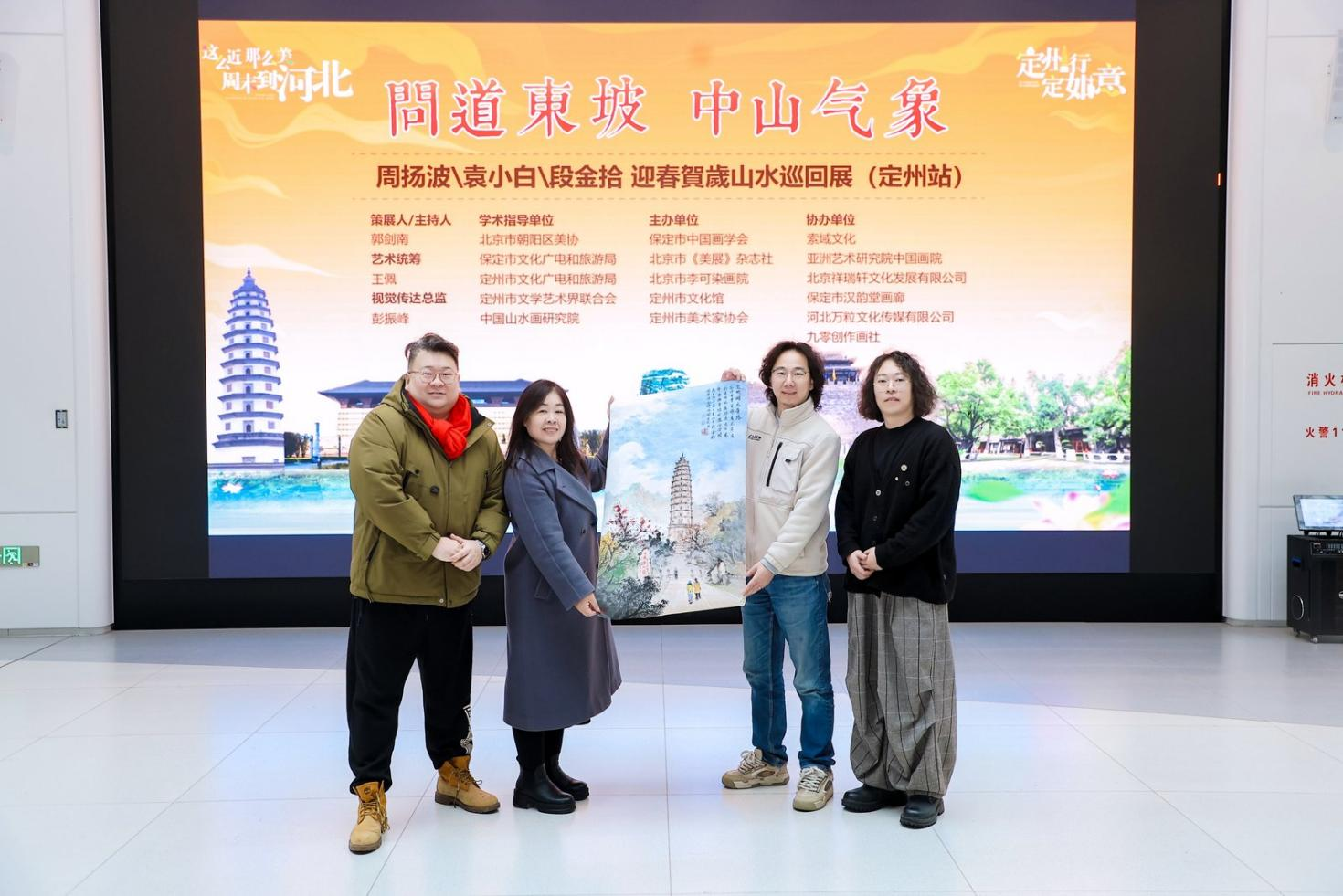 近日,由定州市文化馆、定州市美术家协会、保定市中国画学会、北京市《美展》杂志社等单位主办的“问道东坡 中山气象——周扬波、袁小白、段金拾迎春贺岁山水巡回展”在河北省定州市文体中心一楼美术馆开幕。