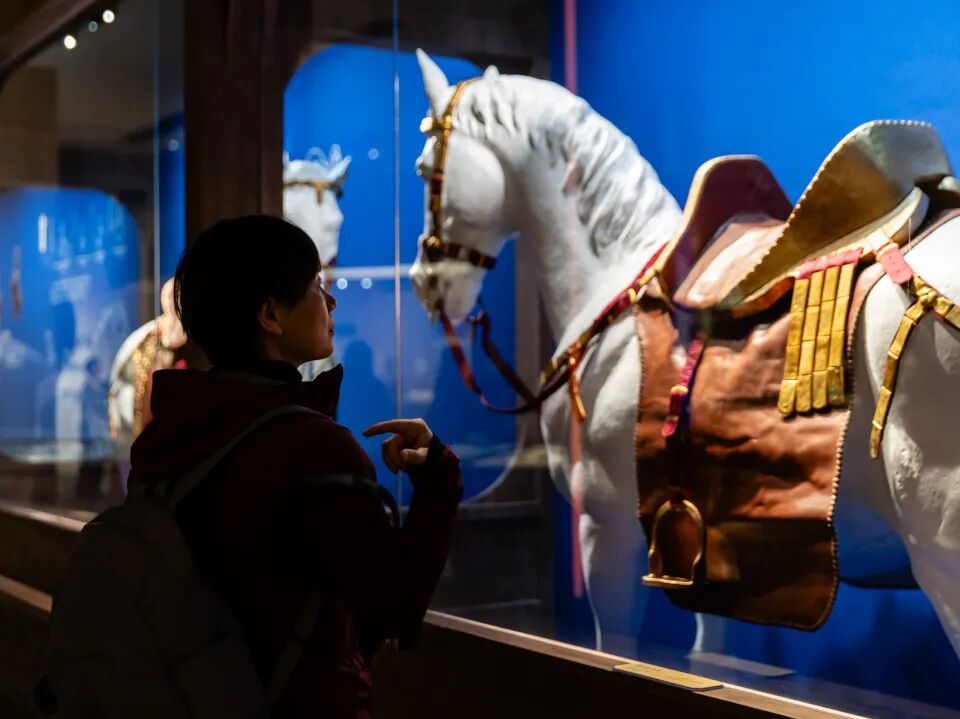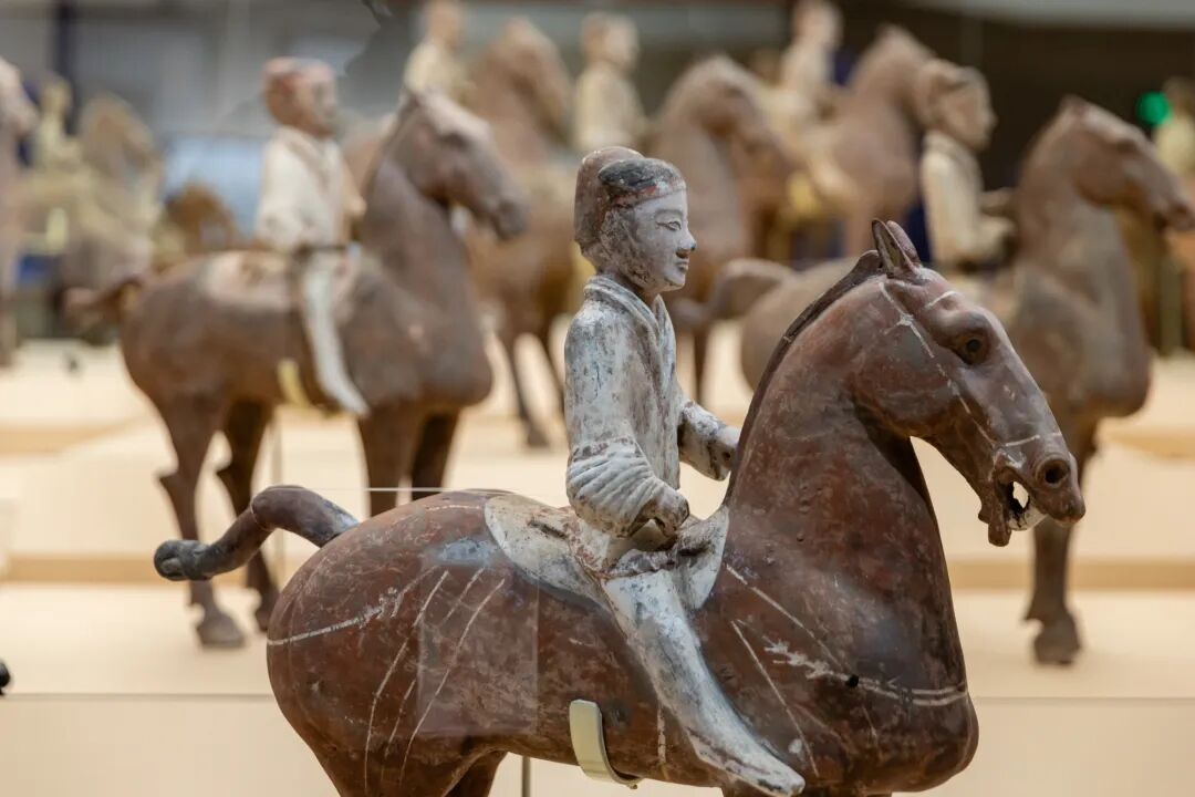 据悉,此次展览遴选与马相关的精品文物120余件/套,通过“良驹伴文明”“车马昭礼制”“鞍辔有工巧”“蹄声通万里”“神骏绘流年”五个单元,全方位、多角度展示出马在中华文明长卷中的千姿百态,生动阐释马在中华文化中的深厚内涵和时代价值。(中国国家博物馆供图)