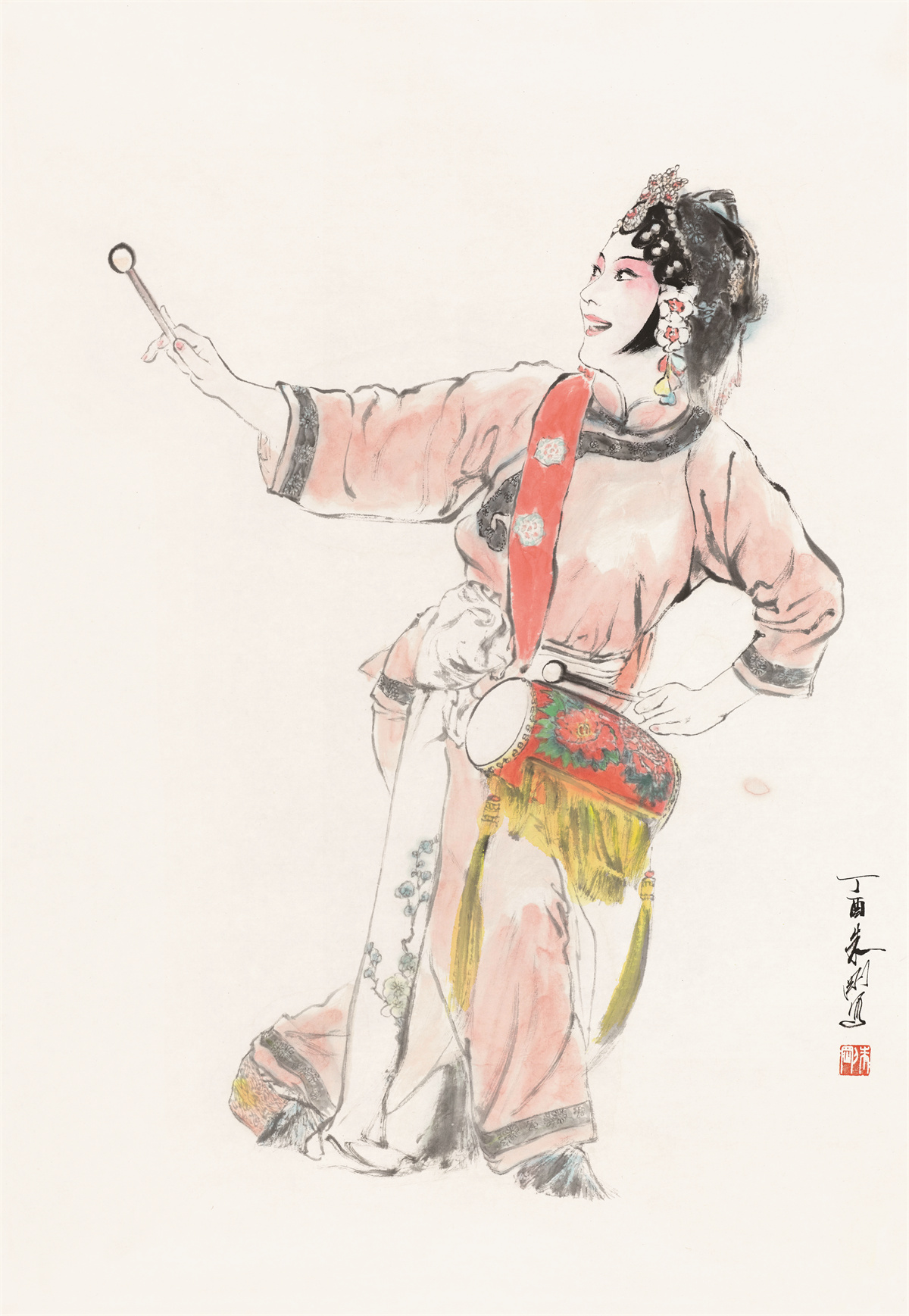 朱刚,1958年生于上海,中国当代著名戏曲人物画家;编审、一级美术师,中国美术家协会会员,上海市美术馆协会会长、上海市文史研究馆馆员、上海书画院画师,作品参加近百次国内外美术展览,出版十余部画册或著作,主创作品获“白玉兰奖”等。他“画戏曲人物,线条求质、墨色重韵、色彩追雅、构图从简,注重脸部的刻画、眼神的交流、动态的捕捉、人物的顾盼,往往在平实中藏飘逸,在简略中见精彩,在浑朴中显深厚,在儒雅中觅洒脱”,是“对传统经典文化发自内心的致敬”。